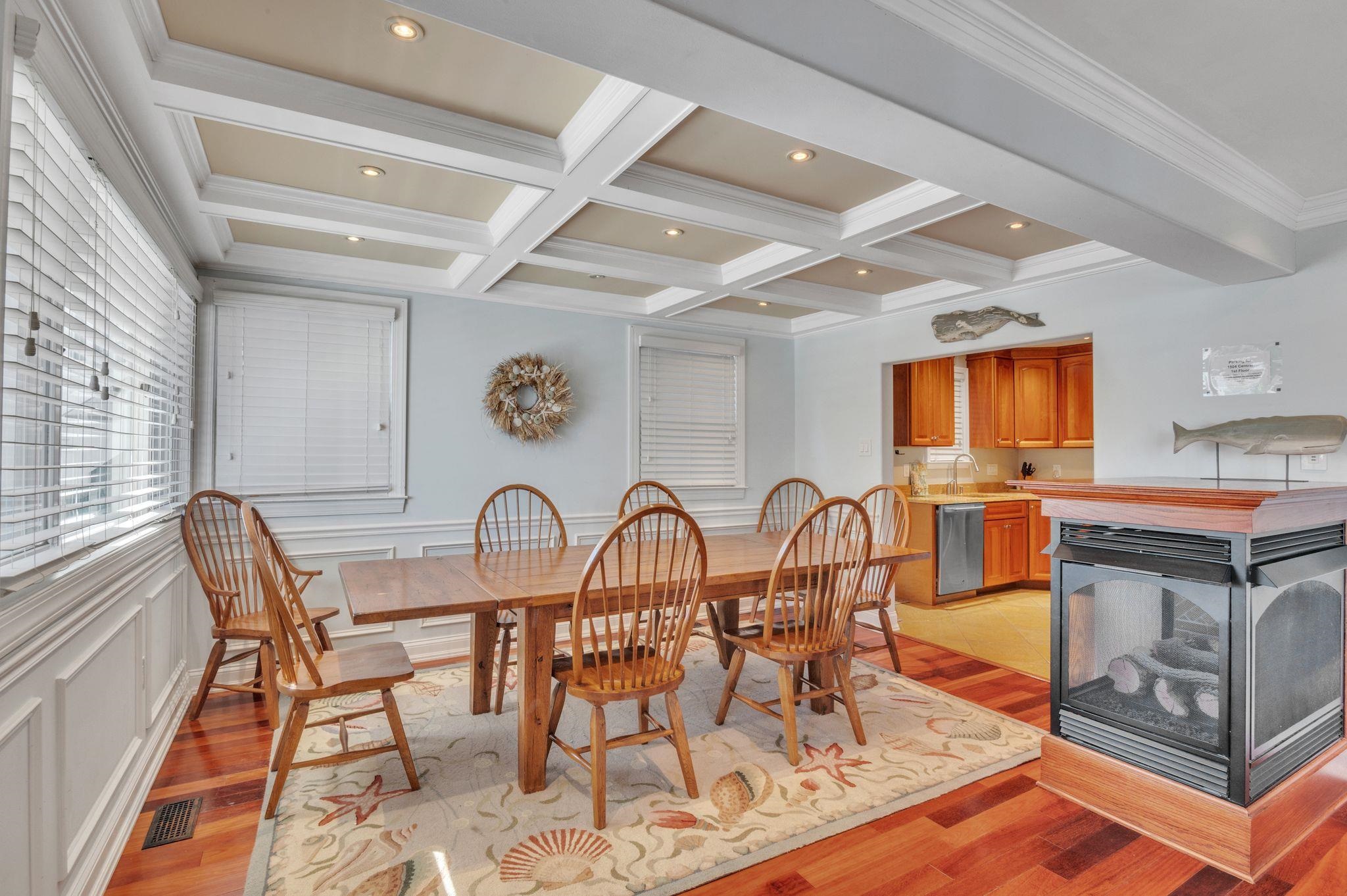 | Welcome to 1504 Central Avenue! This first-floor, three-bedroom, two-bathroom condominium is ideally located in close proximity to beaches, the boardwalk, downtown shops, restaurants, and activities. The great room flows seamlessly from the living area to the dining room, which boasts a three-sided, gas log fireplace and features a coffered ceiling that adds visual detail with gorgeous design, into the kitchen. Perfect for personal use, entertaining, and investment, the potential uses of this versatile property are plenty. |