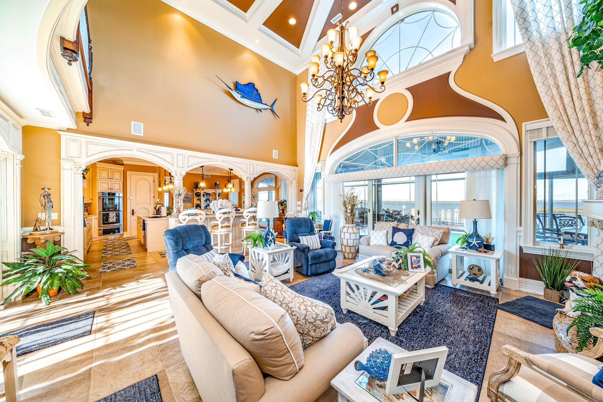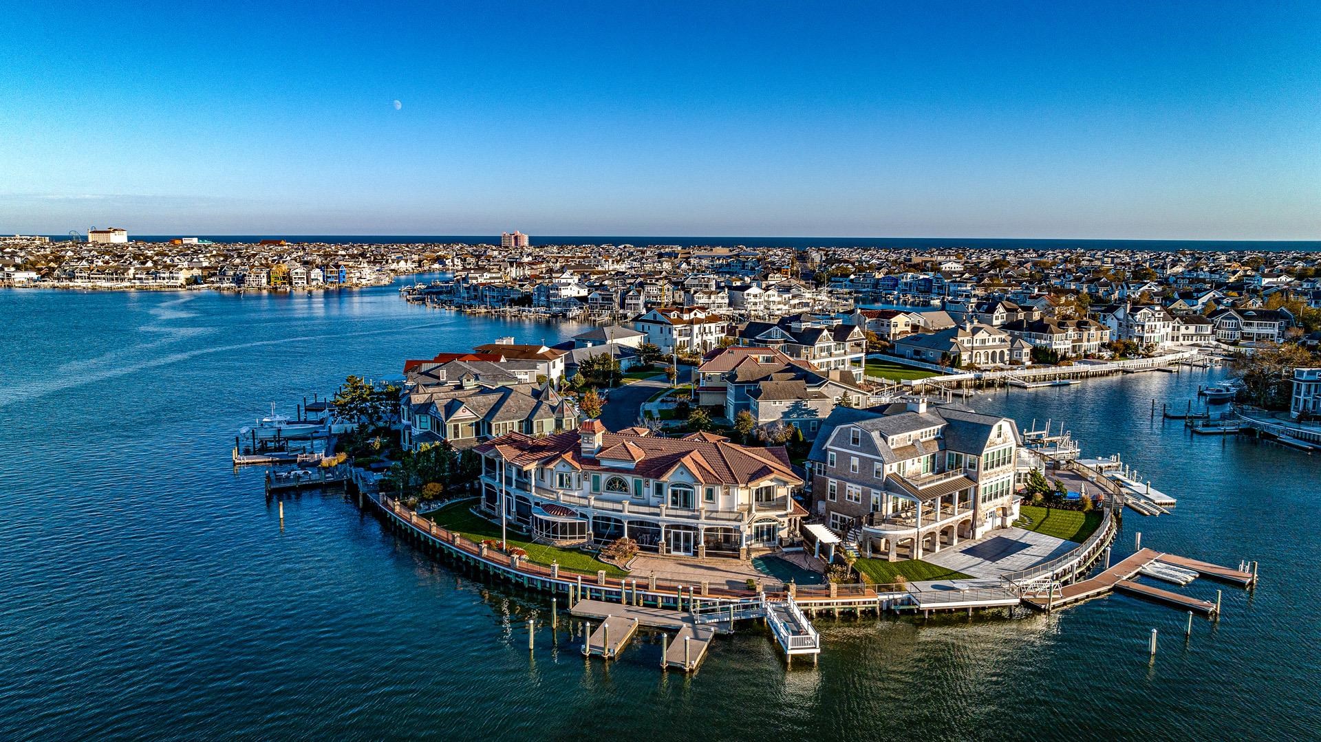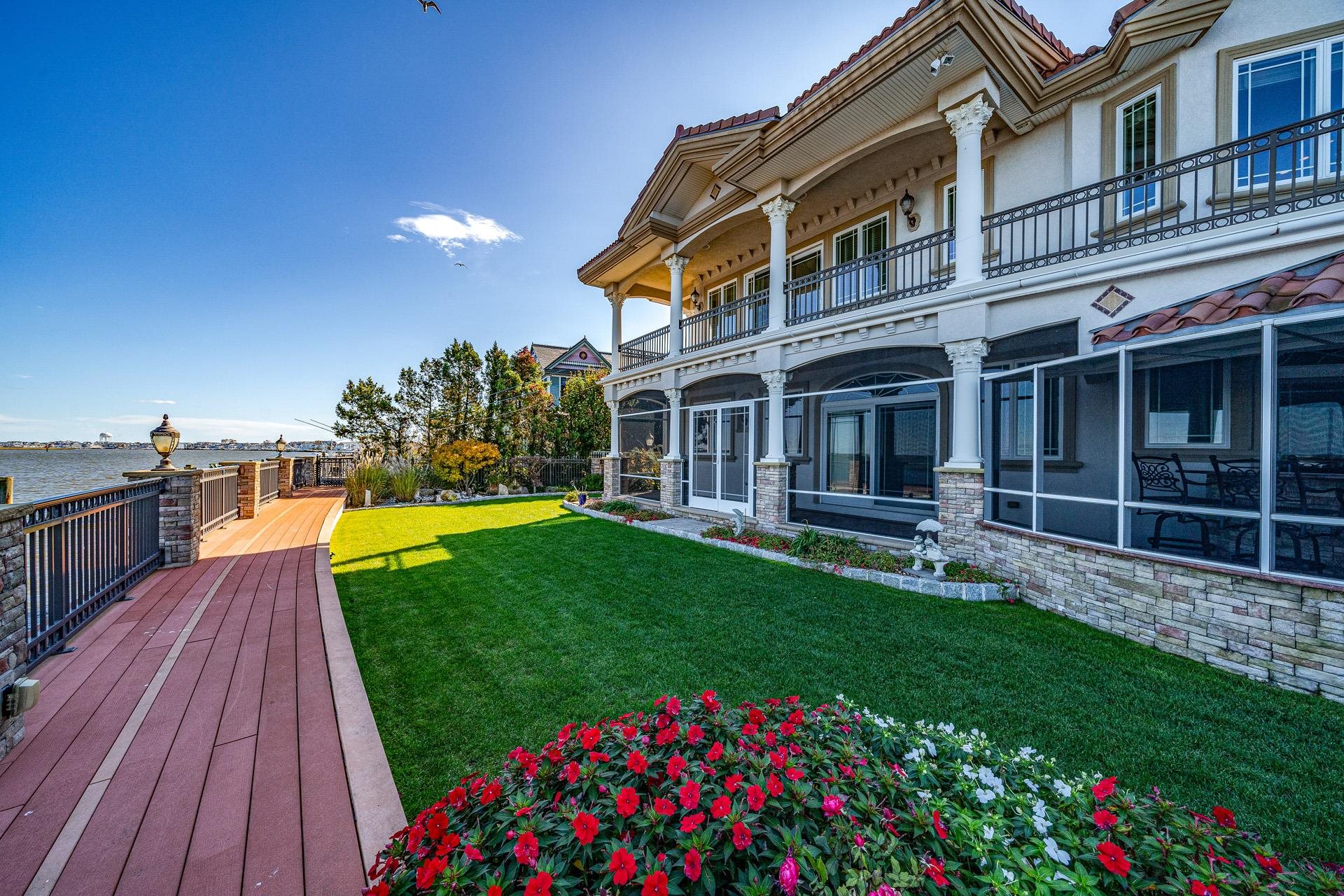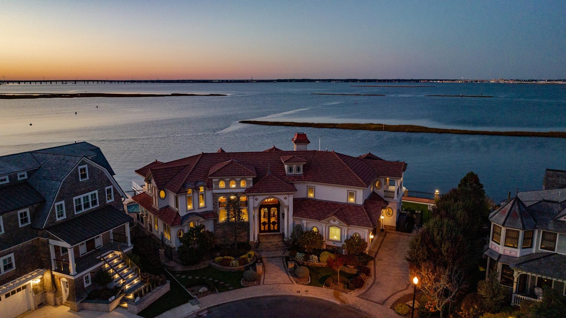 | Welcome to the Crown Jewel of Ocean City! This absolutely spectacular bayfront mansion sits on one of the most desired waterfront properties in South Jersey with over 200' of open bay and a complete 180-degree panoramic view capturing its breathtaking water and sunset views. As you enter this one-of-a-kind, custom-built home, you are immediately blown away by the double height ceilings in the foyer which leads to matching height ceilings in the living room with custom coffered detail. This home is a true masterpiece which offers an unmatched level of detail including custom laid tile flooring with radiant heating, incredible trim-work from floor to ceiling, rich Brazilian cherry flooring, 3 stop elevator, and much more. As you continue through the first floor, you will notice the expansive floor plan offering a large parlor with a built-in bar, a half bathroom and the 6th bedroom in the home. On the opposite side of the home adjacent to the living room you will enjoy a beautiful gourmet kitchen with chef's grade appliances. Continuing to this end of the home is the 5th bedroom, first floor laundry room, pool cabana kitchen and a full bathroom which also opens to the back yard. This area was also designed to accommodate in-law's quarters if needed. The staircase leading to the second floor is a work of art which wraps the front of the home and is custom built from Brazilian cherry. The master suite boasts two large dressing rooms, a spa-like bathroom with double vanities, a wa |