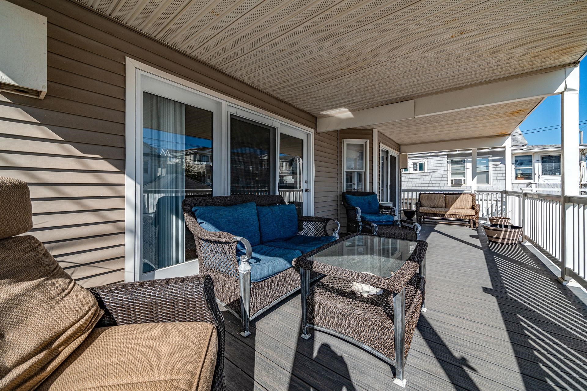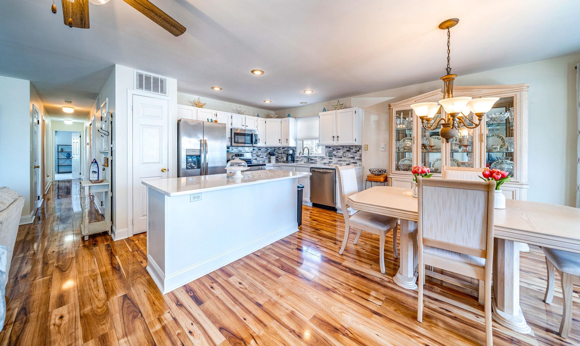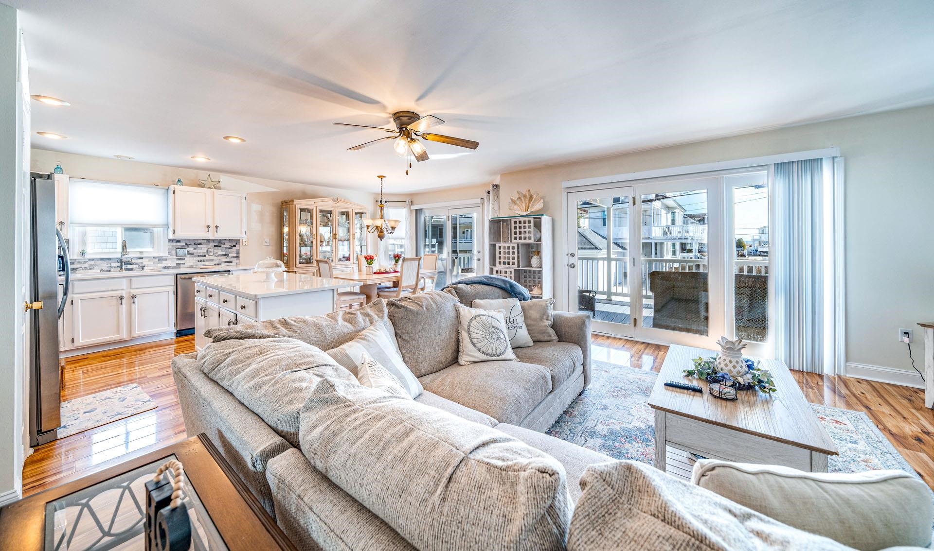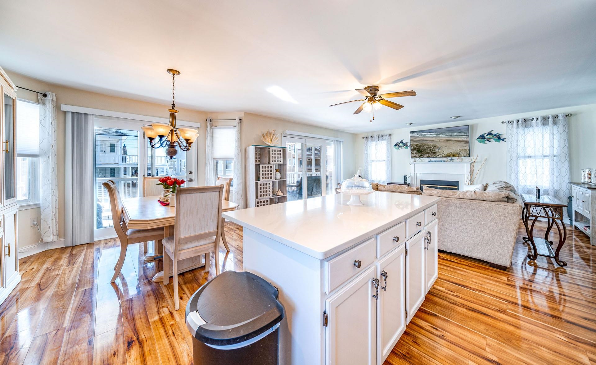 | Welcome to the GOLD COAST! This is a magnificent 4-bedroom, 2-bathroom completely remodeled 1st floor condo located in the HEART of the much sought-after GOLD COAST. From the moment you enter the door, you will fall in love with the ocean view from the living room or as you walk out to the extended large deck. Location, Location, Location! This condo is on the beach side of Central Ave, 1 2 block to the best beaches in Ocean City. During the spring and summer months, the front yard comes alive with beautiful blooming perennials and colors for every season. You will enjoy all the upgrades, starting with stunning wood laminate flooring throughout the main living area, all-new stainless steel kitchen appliances, QUARTZ countertops with a marble backsplash and a central Island large enough to seat 3-4 people, recessed lighting, and a designated pantry. The living room and dining room were designed for a larger living and dining space with an open concept, ceiling-to-floor windows that open to an expansive deck featuring an ocean view. The large Primary Bedroom offers French doors that lead out to your private deck where you can relax with your morning coffee overlooking the beautiful landscape. The Primary bathroom features a furniture-style vanity counter with double sinks, along with a newly installed tile floor and a tile shower tub. The other 2 large bedrooms share a Jack & Jill bathroom totally renovated and tiled with a walk-in glass-enclosed shower. All four bedrooms are o |