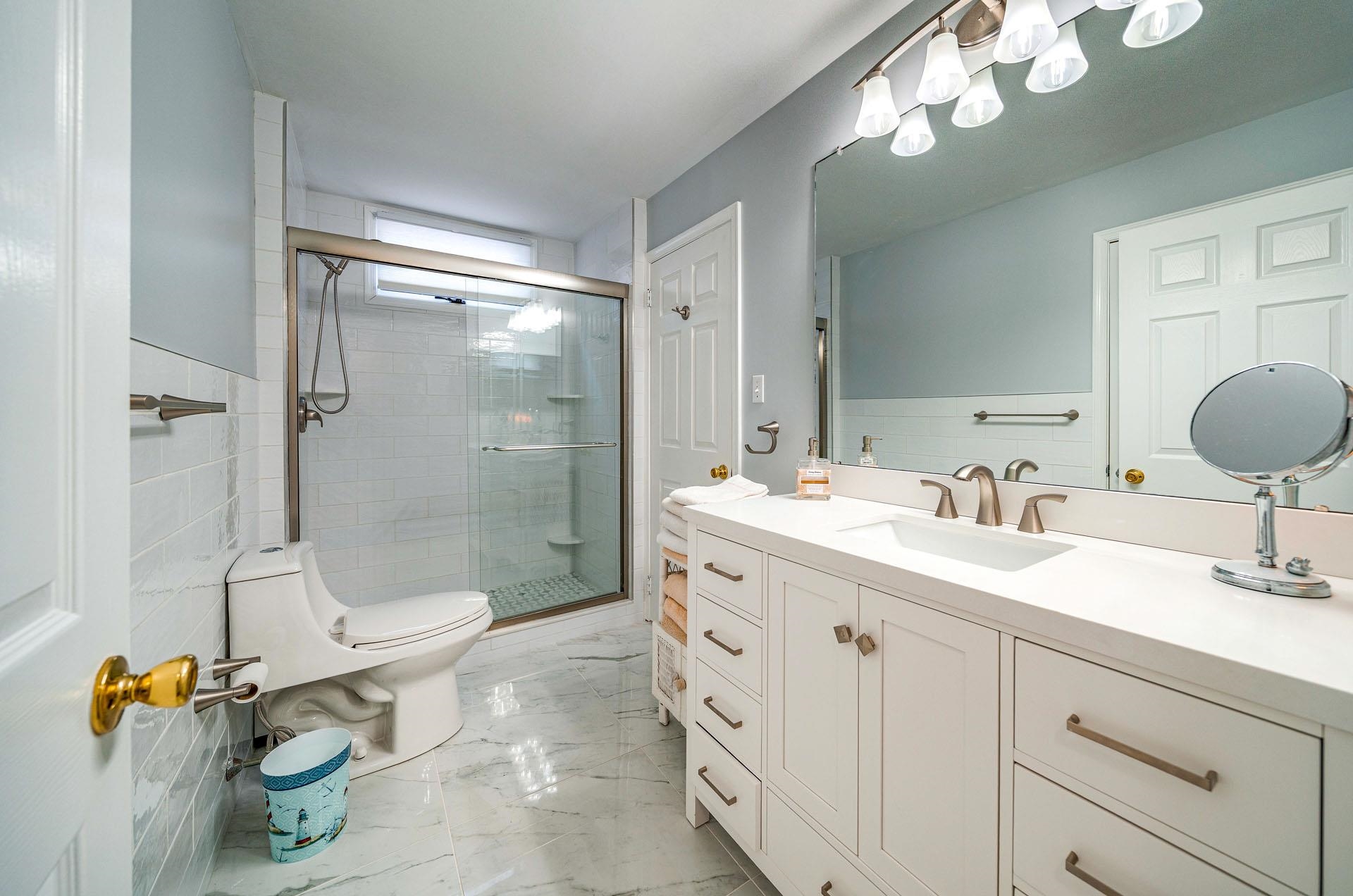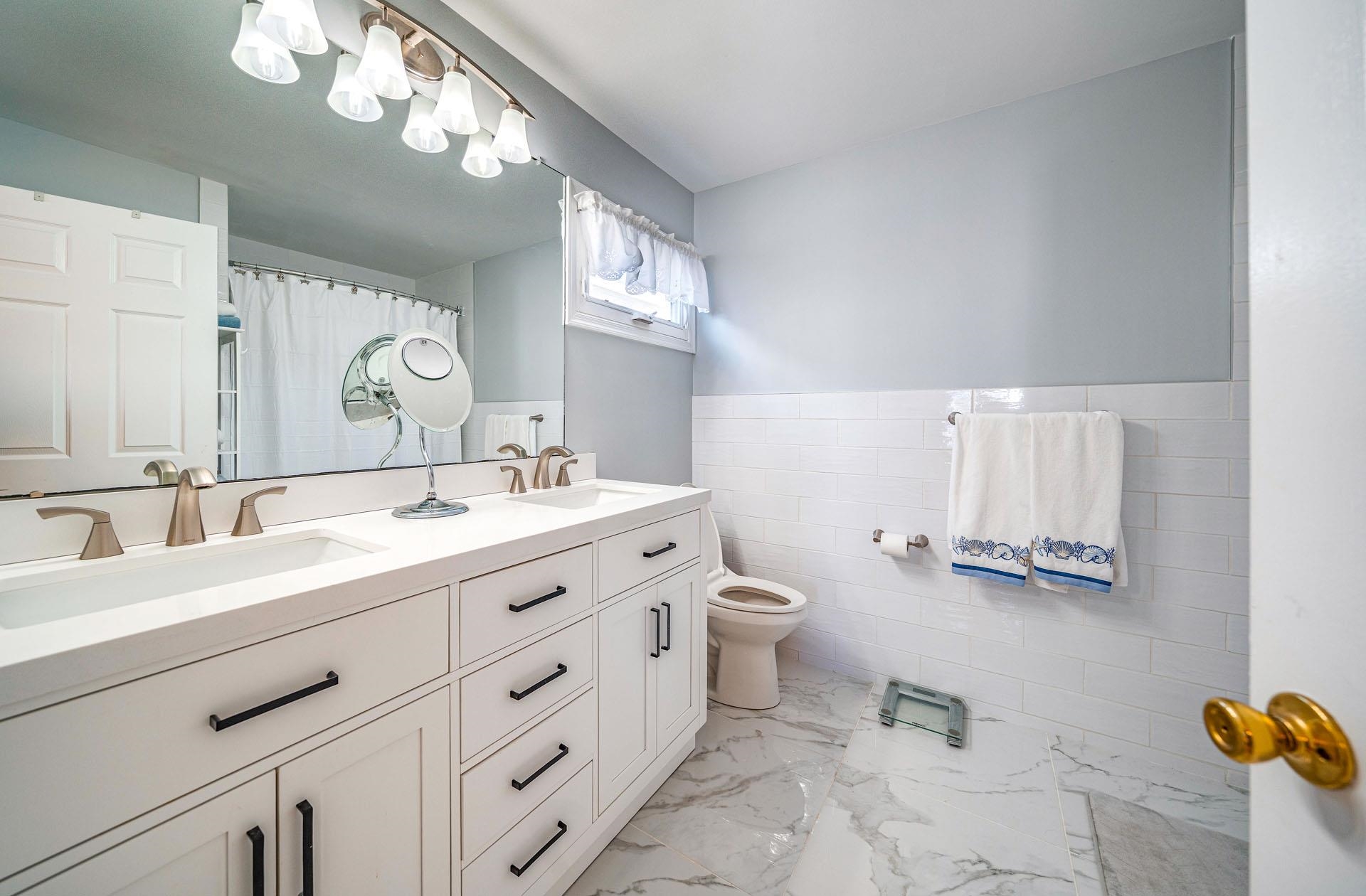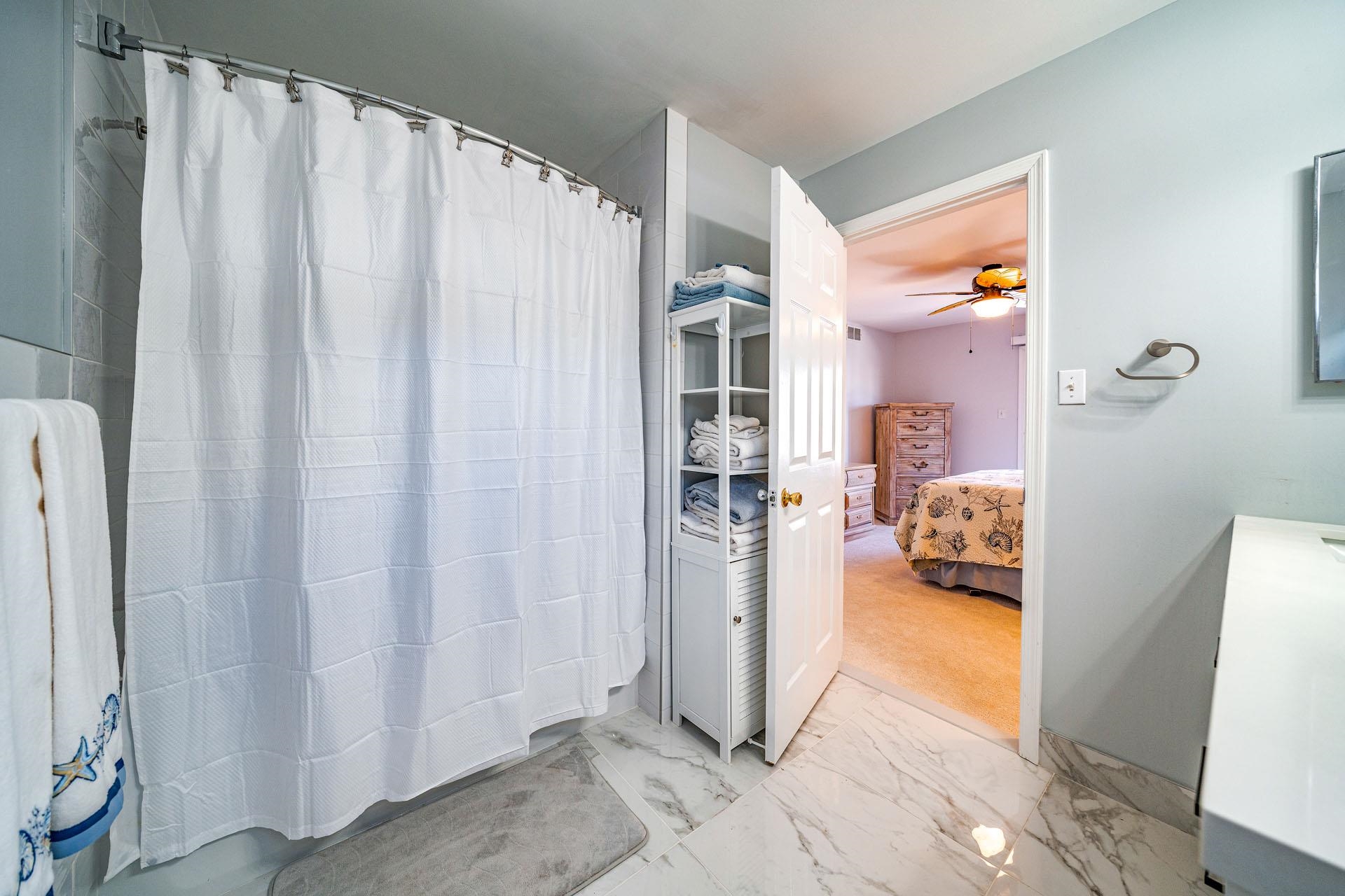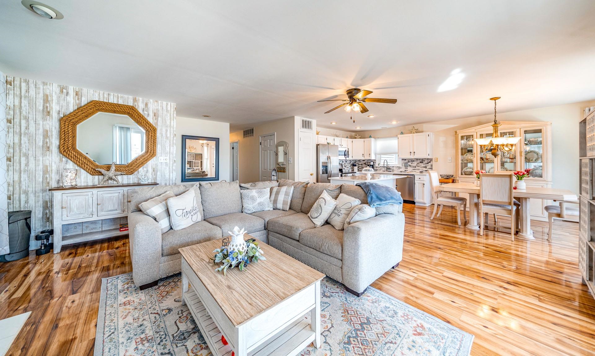 | Welcome to the GOLD COAST! This is a magnificent 4-bedroom, 2-bathroom completely remodeled 1st floor condo located in the HEART of the much sought-after GOLD COAST. From the moment you enter the door, you will fall in love with the ocean view from the living room or as you walk out to the extended large deck. Location, Location, Location! This condo is on the beach side of Central Ave, 1 2 block to the best beaches in Ocean City. During the spring and summer months, the front yard comes alive with beautiful blooming perennials and colors for every season. You will enjoy all the upgrades, starting with stunning wood laminate flooring throughout the main living area, all-new stainless steel kitchen appliances, QUARTZ countertops with a marble backsplash and a central Island large enough to seat 3-4 people, recessed lighting, and a designated pantry. The living room and dining room were designed for a larger living and dining space with an open concept, ceiling-to-floor windows that open to an expansive deck featuring an ocean view. The large Primary Bedroom offers French doors that lead out to your private deck where you can relax with your morning coffee overlooking the beautiful landscape. The Primary bathroom features a furniture-style vanity counter with double sinks, along with a newly installed tile floor and a tile shower tub. The other 2 large bedrooms share a Jack & Jill bathroom totally renovated and tiled with a walk-in glass-enclosed shower. All four bedrooms are o |