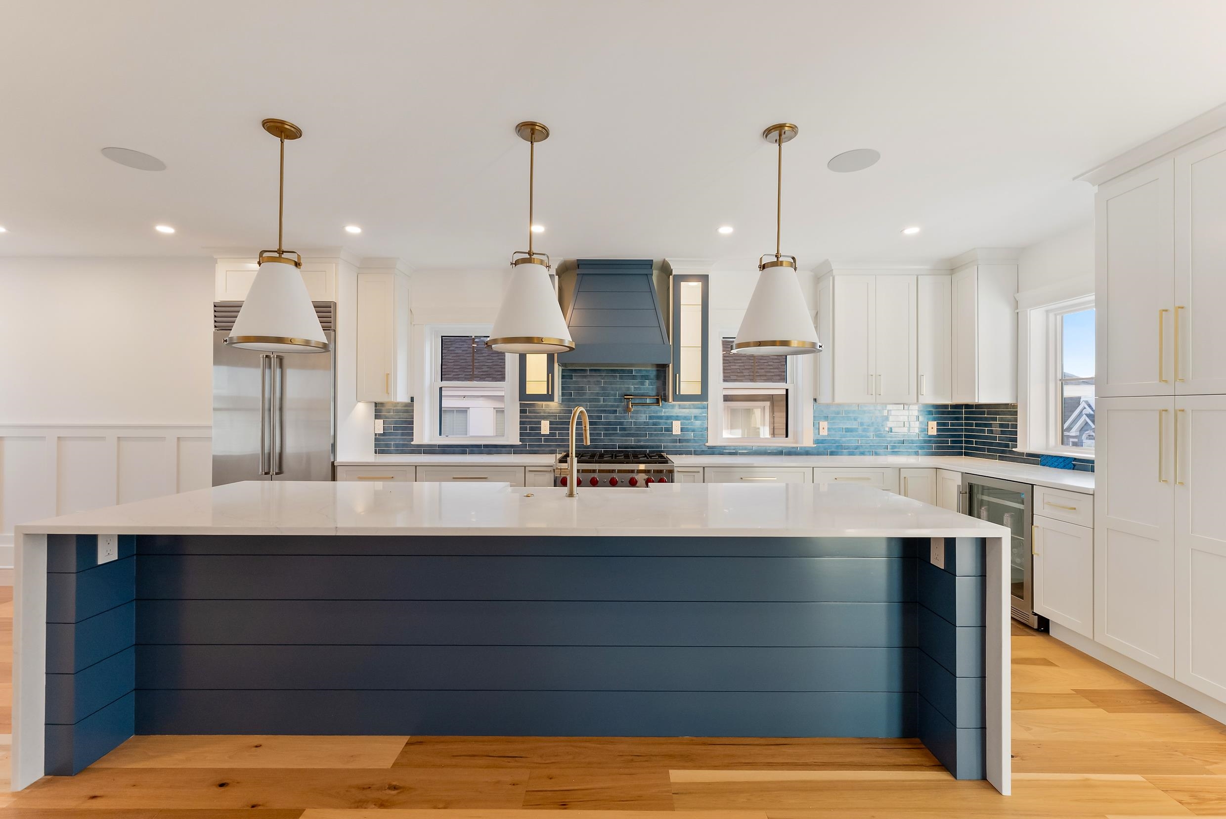 | Gardens neighborhood Beach block New construction 2025 by Michael James Custom Builder Elevator Heated pool Wolf + Sub-Zero kitchen Ocean-view decks 2-car garage Near premier Ocean City beach. On the beach block in Ocean City s coveted Gardens neighborhood, 14 Gardens Road stands as a newly constructed expression of coastal architecture and refined craftsmanship, designed and built to perfection by Michael James Custom Builder. Clad in durable James Hardie shake siding combined with Azek board and batten, the exterior pairs timeless coastal style with materials engineered for lasting performance. Every inch of this five-bedroom, four-and-a-half-bath masterpiece speaks to thoughtful design and elevated living. From the moment you step through the custom entry, you re greeted by wide-plank hardwood floors, crisp white shiplap walls, and an abundance of natural light pouring through oversized windows. The atmosphere is elegant yet relaxed, blending coastal textures with sophisticated details that make every space feel both curated and comfortable. The main living level showcases the home s seamless flow and attention to proportion. The great room is anchored by a sleek gas fireplace framed in custom millwork, creating a cozy focal point for gatherings year-round. The adjoining chef s kitchen is a showpiece in itself, featuring a dramatic quartz waterfall island, Wolf and Sub-Zero appliances, ocean-blue cabinetry with gold hardware, and |