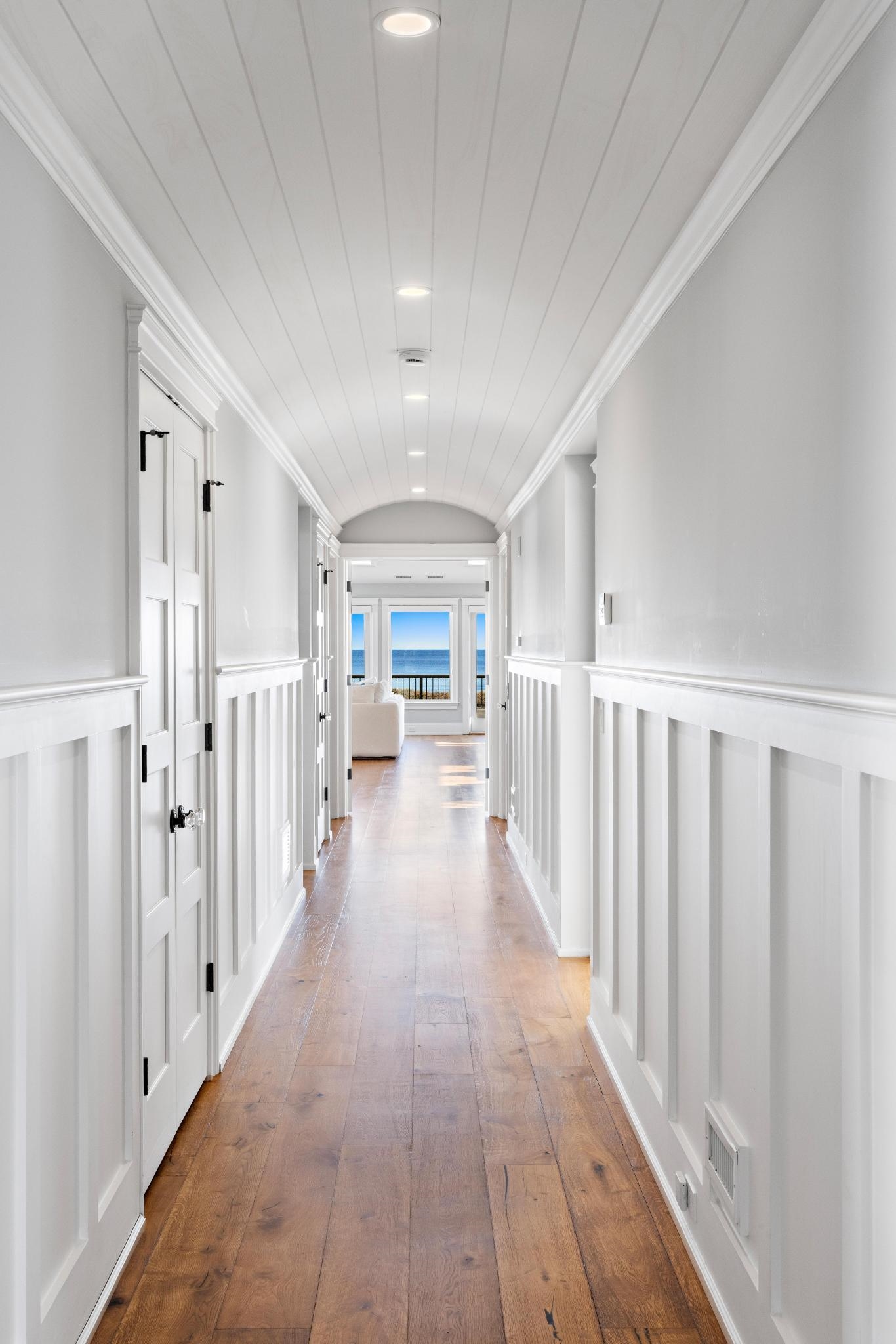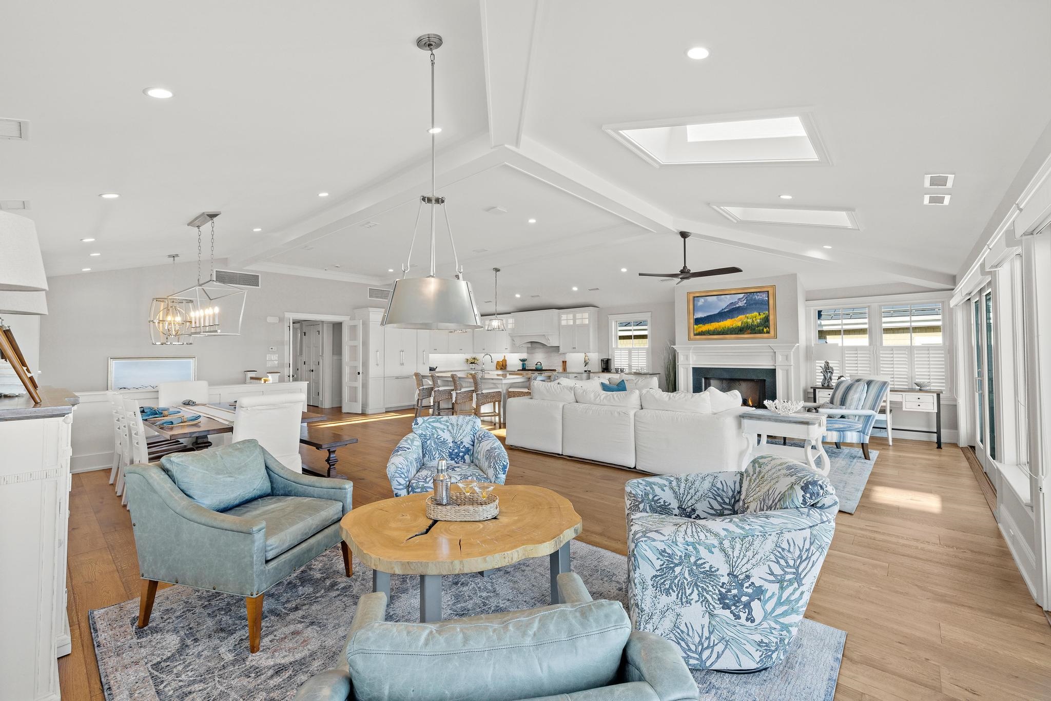 | Welcome to The Eminence where land, privacy, and presence converge in a way rarely experienced at the Jersey Shore. Set on over 1.5 acres of oceanfront real estate, with assessed ownership extending 1,550 feet from Central Avenue to the ocean s edge, this 2019-built residence occupies one of the deepest and most substantial parcels ever presented to the Ocean City market. The setting feels expansive and serene, with protected dunes, open sky, and a natural sense of separation that allows the coastline to unfold organically around you. This multi-level, 2nd floor residence offers 5 bedrooms and 6.5 baths across a thoughtfully designed overall footprint of 4,400 square feet, balancing coastal elegance with everyday comfort. Impeccably curated refinements are found throughout including refinished wide-plank hardwood floors, custom millwork, glowing fireplace embers, handcrafted stair runners, and a mahogany-finished floor in the enclosed outdoor shower. A private elevator, built-in bunks, hurricane shutters, and methodically restored exterior light fixtures each individually removed, refinished, and reinstalled, which serve as a testament to the exceptional level of attention to detail. Anchoring the home, the chef s kitchen features a generous center island, premium countertops, and high-end appliances, creating an ideal setting for both relaxed mornings and effortless entertaining. Two laundry areas, three air handlers, and two hot water heaters provide peace of mind |