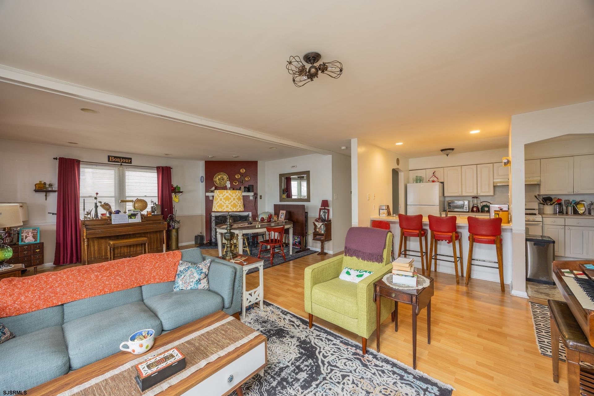 Spacious and charming, this first-floor beach home in the sought-after north end of Ocean City, NJ is a must-see! With 3 bedrooms, 2 bathrooms, beautiful wood floors, and an eat-in kitchen, the open-concept floor plan offers generous room sizes and a welcoming atmosphere. Enjoy the porch, parking, central air, gas heat, and a cozy fireplace. The home is well-maintained and sits on an oversized lot in a neighborhood full of year-round residents! |