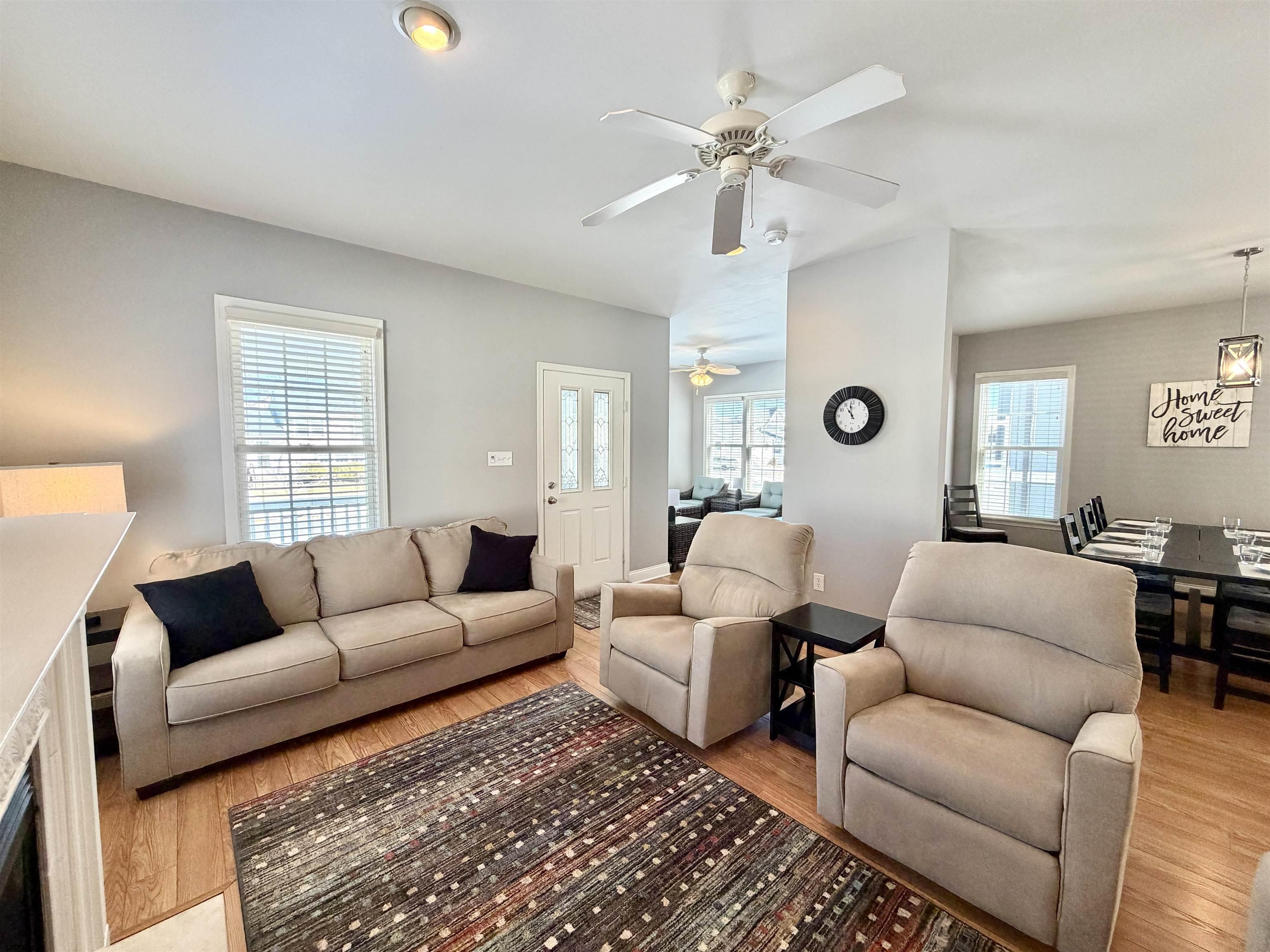 | This thoughtfully designed home blends comfort, functionality, and effortless entertaining. A welcoming front porch sets the tone before opening into a bright, open layout that seamlessly connects the living, dining, and family rooms. A gas fireplace adds warmth and ambiance, while the kitchen serves as the heart of the home with stainless steel appliances, a center island, and sightlines to the main living spaces. A versatile sunroom offers the perfect flex space—ideal for a home office, playroom, guest space, or additional bedroom. Upstairs, you’ll find four well-proportioned bedrooms with generous closet space, including two walk-in closets. The primary suite features a private bath with a tiled shower and linen storage, complemented by a spacious hall bath with dual sinks. Everyday convenience continues with a dedicated laundry room offering ample space for storage and organization, plus easy access to a partially floored attic for additional storage. The attached one-car garage includes extra storage space and a utility sink, and there is plenty of off-street parking. Outdoor living shines in the fenced backyard, with potential space for a pool, gas grill hookup, and an enclosed outdoor shower—perfect after a day at the beach. |
